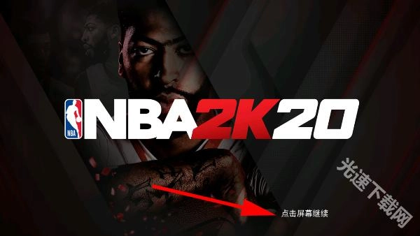 1、打开nba2k20正版,如图所示点击界面空白处继续。