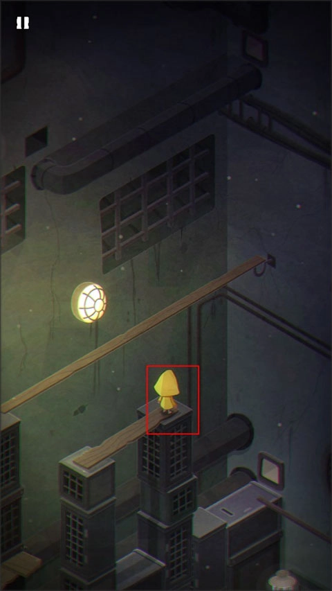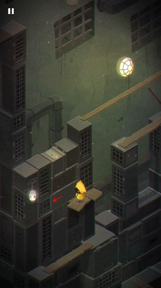 1、游戏开场时,摩诺正用门抵御外部的攻击;进入第一关后,他身处一个类似篮子的装置里,得按住上方的拉杆才能让自己落到地面。