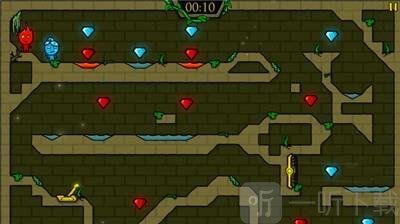 2. 当液体覆盖的区域太广,导致角色无法直接通过时,可以寻找场景中的机关和石块。操控与液体颜色相同的冰火人推动石块,在液体上铺设出可供行走的路径,帮助另一个冰火人顺利通过。