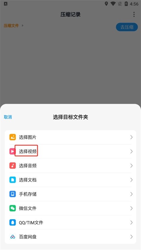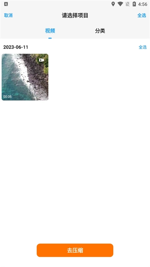 3、接着选择需要压缩的视频后点击下方的去压缩;