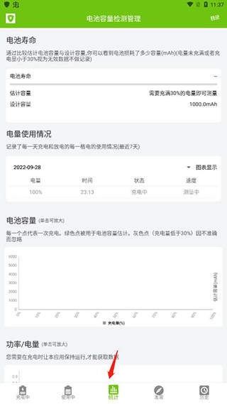 3、另外在统计里还可以查看详细的电量使用情况,