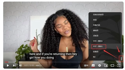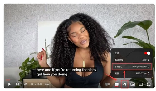 1、在YouTube软件中打开任意一个视频,接着点击视频里的“字幕”选项。