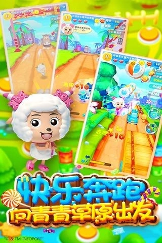1、全面还原《喜羊羊与灰太狼》动漫中原创角色的表现,高清3D画面呈现熟悉的喜羊羊、美羊羊等角色;