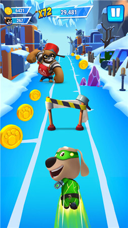 3、浣熊Boss对决:玩家能够在紧张刺激的浣熊Boss对决里,解救会说话的安吉拉、会说话的汉克狗、会说话的狗狗本以及会说话的金杰猫。